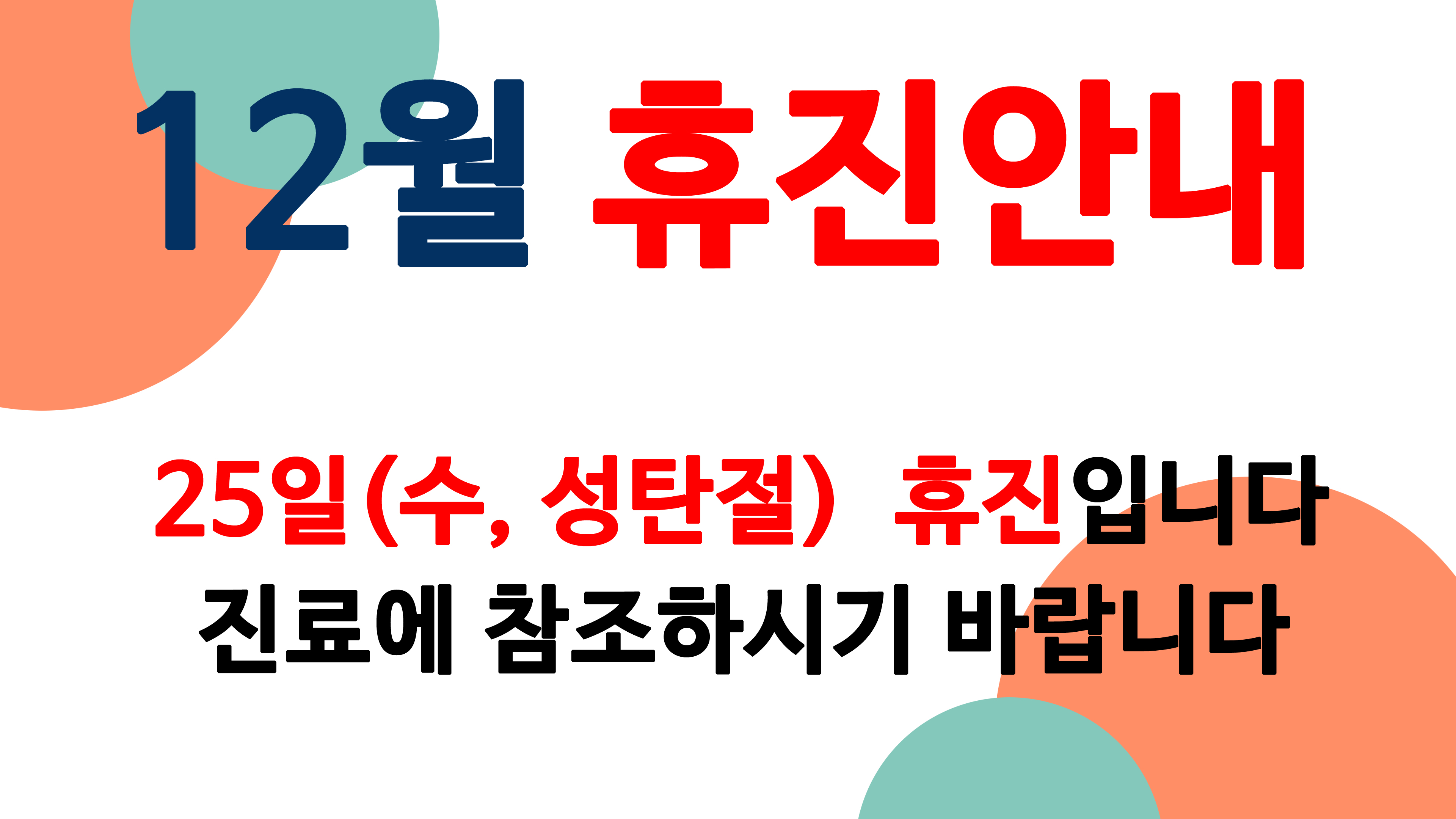 2024년 12월 토요진료/휴진 안내