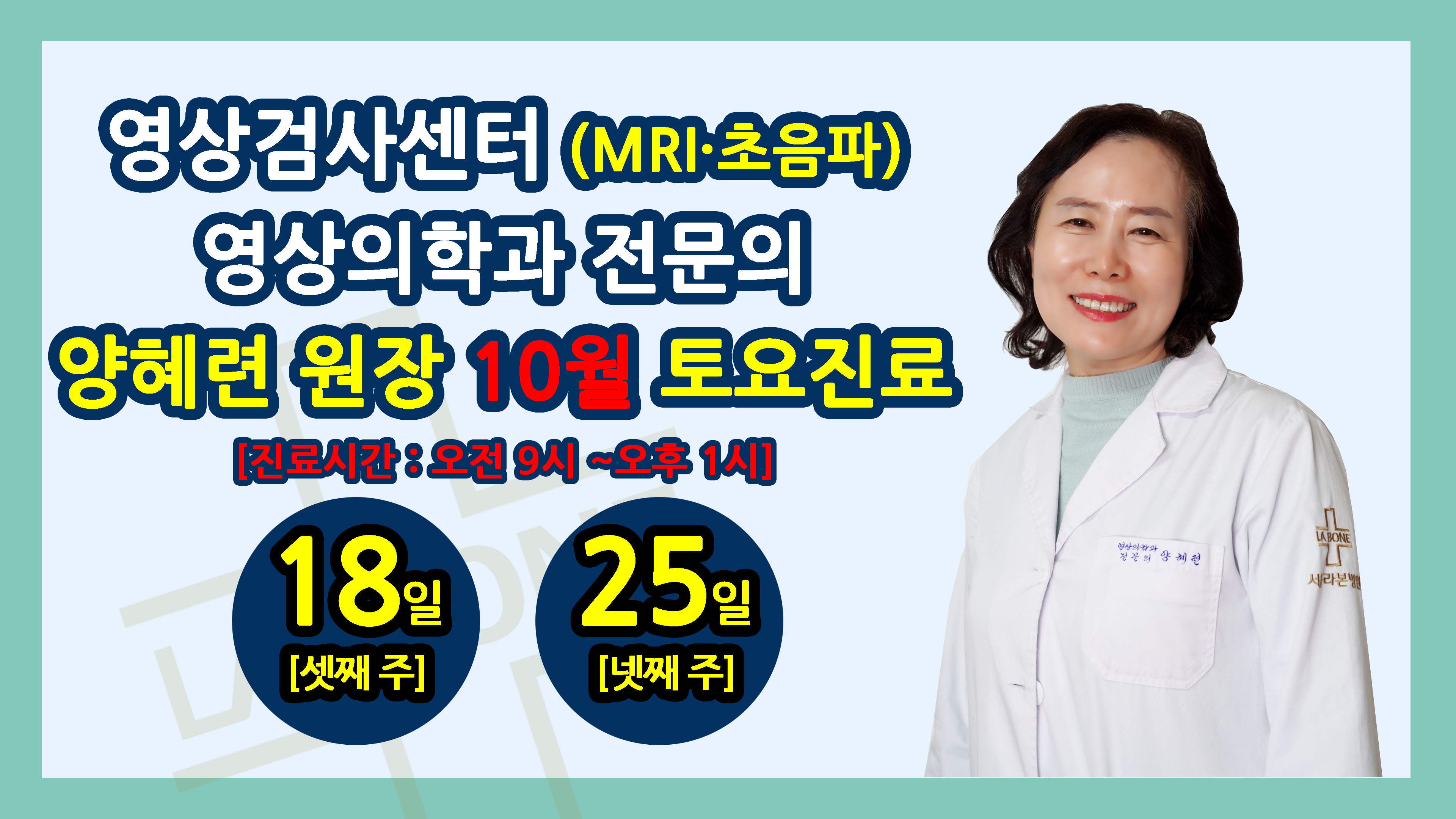 2025년 10월 토요진료/휴진 안내